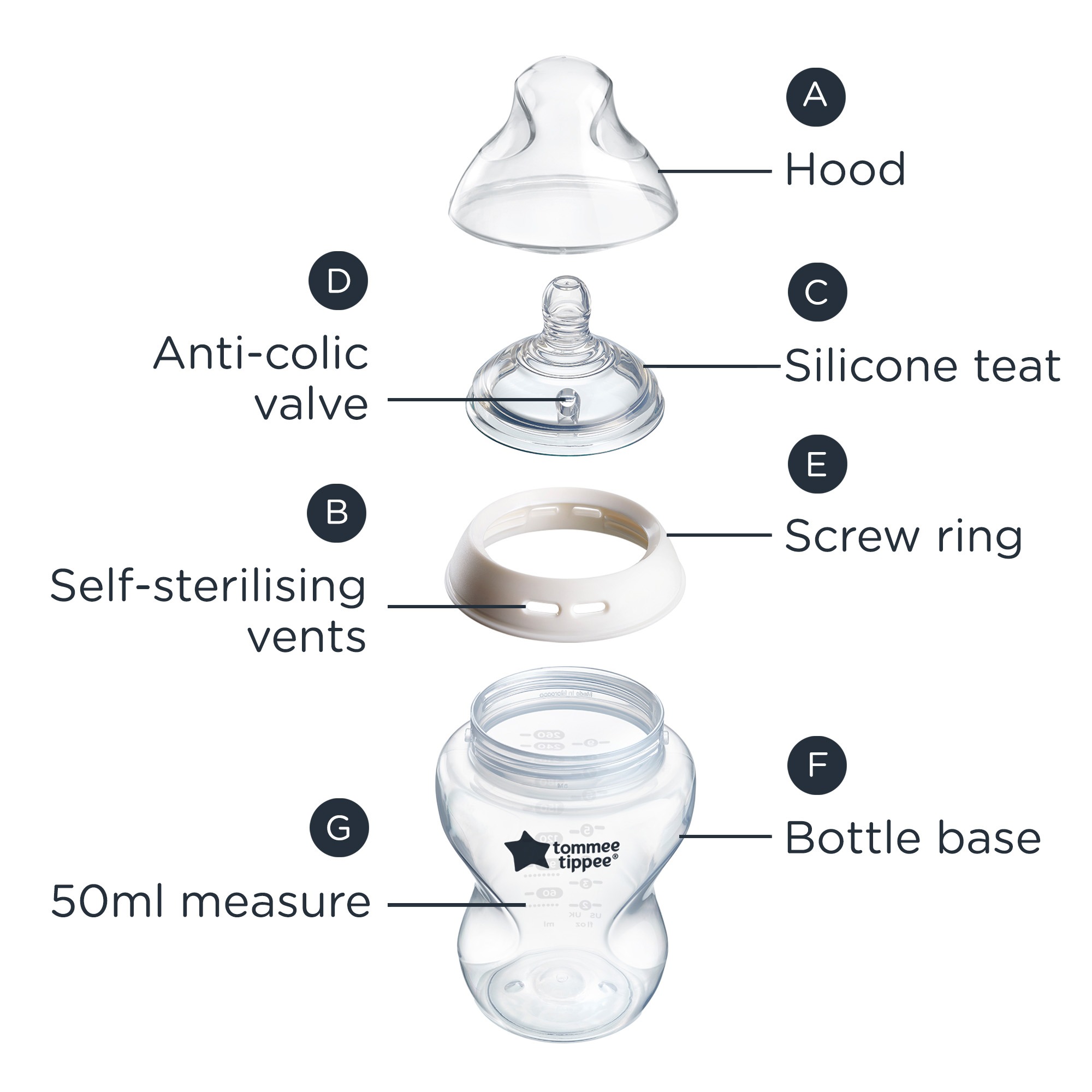 PLEASE NOTE: It’s important that the silicone teat is not tighten on to base when self-sterilizing in microwave to allow the steam to flow in.